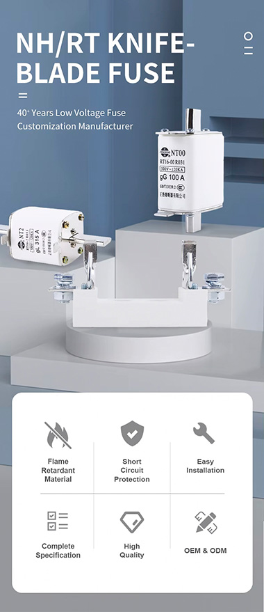 Il portafusibile a lama in ceramica ad alta rottura personalizzato NT00 AC 160 A 500/690 V è progettato per una protezione sicura ed efficiente dei circuiti in applicazioni industriali e commerciali. Questo supporto è progettato per ospitare fusibili a lama NT00, garantendo un'installazione sicura e prestazioni affidabili.