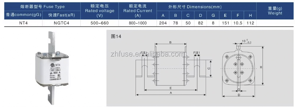 Il fusibile HRC NH4/il fusibile NT4/il fusibile RT16-4 sono componenti essenziali utilizzati per la protezione del circuito negli impianti elettrici industriali e commerciali. Il fusibile HRC NH4/il fusibile NT4/il fusibile RT16-4 sono progettati per interrompere un flusso di corrente eccessivo, salvaguardando le apparecchiature elettriche da danni causati da sovraccarichi o cortocircuiti.