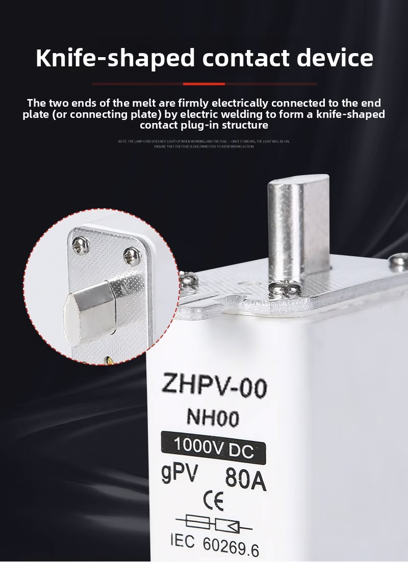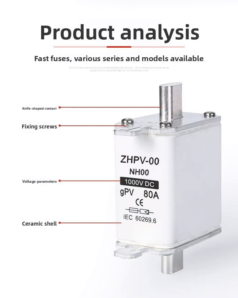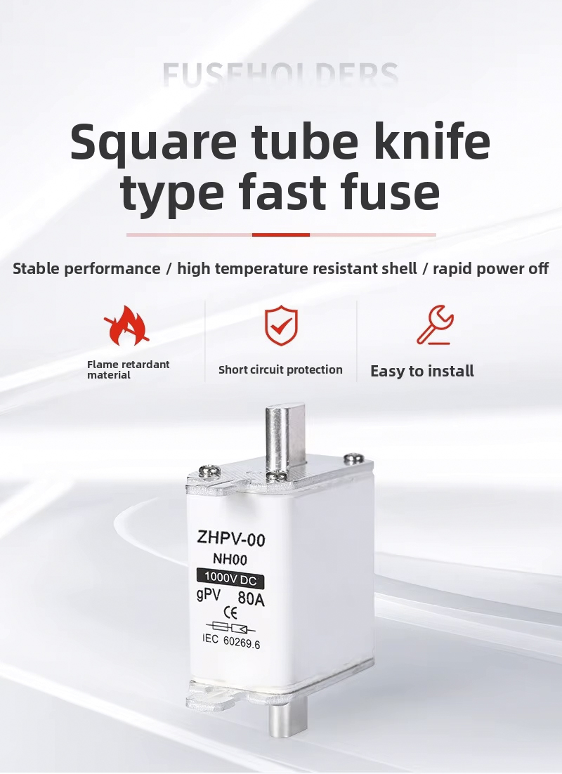 Realizzato in plastica resistente, il fusibile fotovoltaico a coltello a bassa tensione NH00-1000V IEC in plastica con potere di interruzione 80A 6ka offre eccellente isolamento e resistenza al calore, garantendo prestazioni stabili in ambienti difficili. Conforme agli standard IEC, questo fusibile garantisce sicurezza e soddisfa i requisiti dei moderni progetti di energia rinnovabile. Il design a coltello consente una facile installazione e sostituzione, riducendo i tempi di manutenzione e garantendo il funzionamento continuo del sistema. Scegli il fusibile fotovoltaico a coltello a bassa tensione NH00-1000V IEC in plastica con potere di interruzione 80A 6ka per la tua applicazione solare o industriale per beneficiare di protezione, durata e conformità eccezionali con gli standard di sicurezza internazionali.