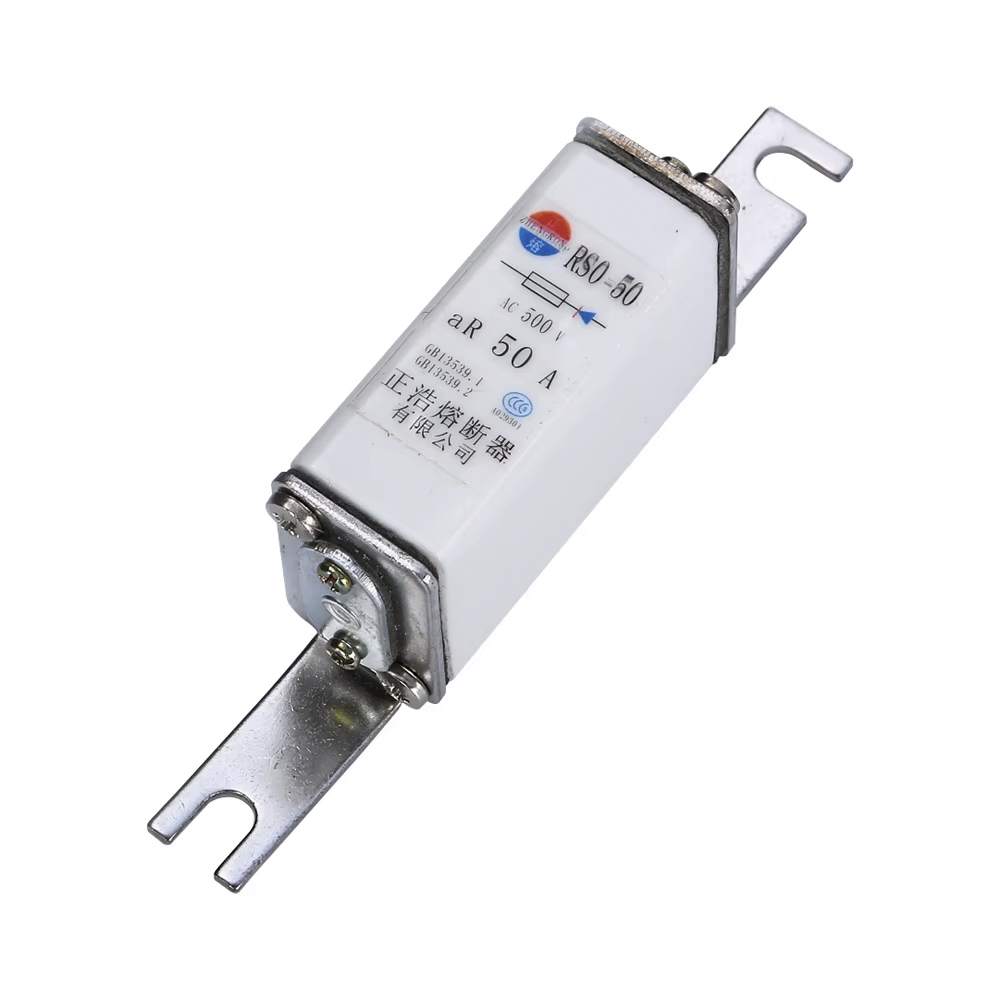 Il fusibile RS0/RS3-50 da 500 V è un fusibile rapido imbullonato a tubo quadrato, con una tensione nominale di 500 V e un potere di interruzione di 50 kA, che offre una buona garanzia di sicurezza. Può essere utilizzato in qualsiasi trasformatore e inverter.