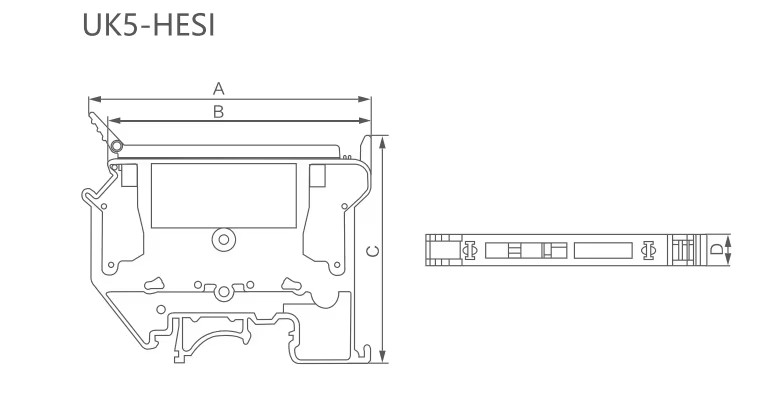 Tipo: Il morsettiera del titolare del fusibile uk5-HESI può essere utilizzato per varie dimensioni di fusibili, come 5x20, 5x25, 6x30, ecc.